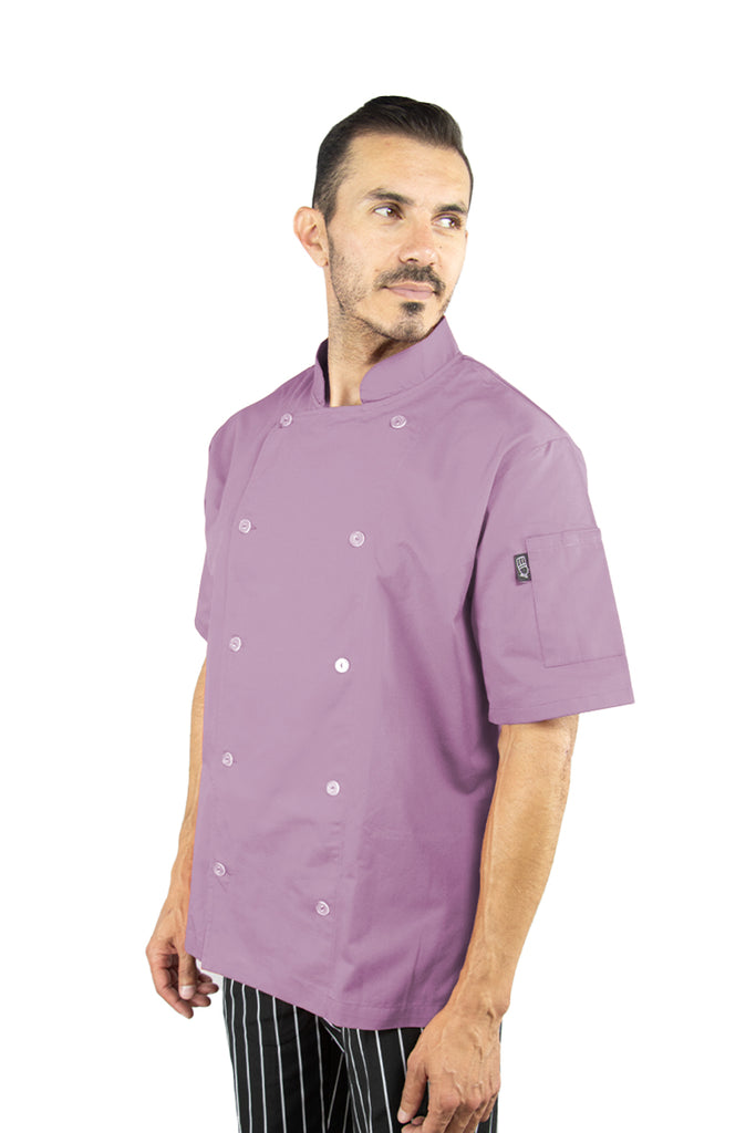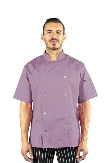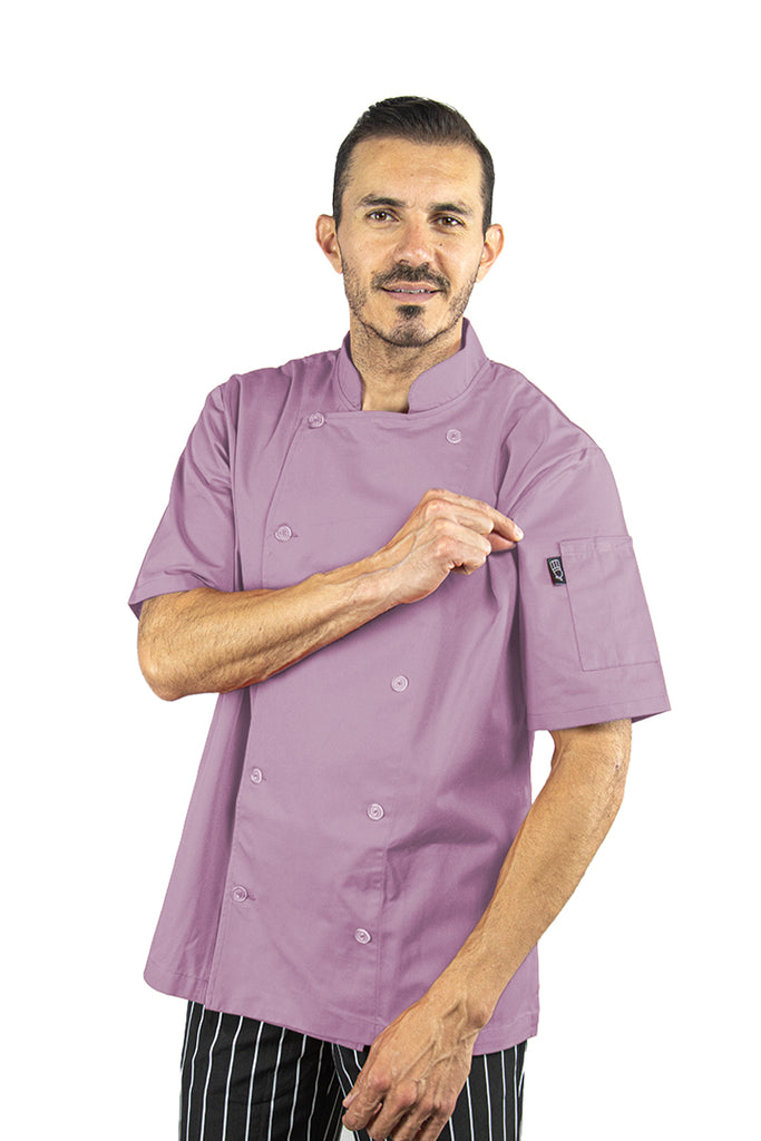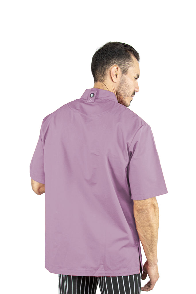Diseño clásico y funcional, ideal para el día en cocina o servicio. Confeccionada en tela ligera de alta durabilidad, cuenta con botones transparentes al frente que aporta un toque limpio y elegante. Su corte de dama y caballero con manga corta brindan comodidad y frescura durante largas jornadas.