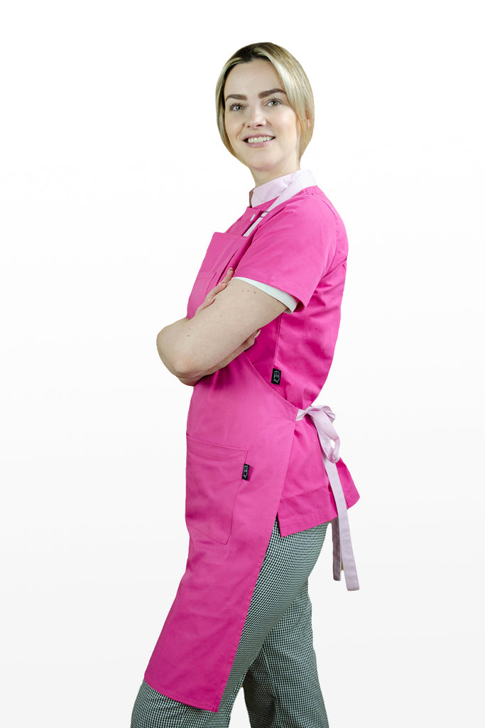 Nuestro mandil presenta una bolsa pequeña en el pecho, ideal para guardar utensilios esenciales. Cuenta con dos prácticas bolsas, proporcionando espacio adicional para herramientas y accesorios.